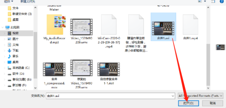 2.点击添加文件之后紧接着会打开一个选择文件的界面,在这个界面中我们选中目标AVI视频文件之后点击打开按钮即可。