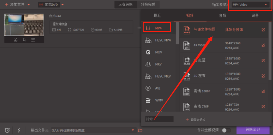 万兴优转将AVI转换成MP4格式的方法步骤
