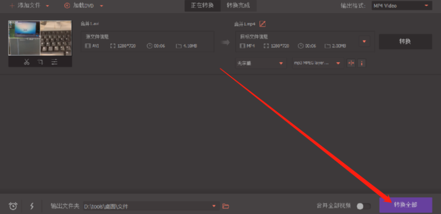 6.最后在选择好输出文件夹之后我们点击界面右下角的转换全部按钮或者是视频列表后面的转换按钮就可以开始转换视频格式的操作了。