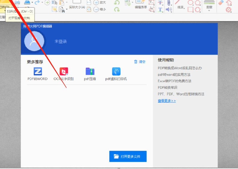 1.首先第一步我们打开软件之后点击界面左上角的打开按钮,如下图中所示,点击之后可以添加想要处理的PDF文件。