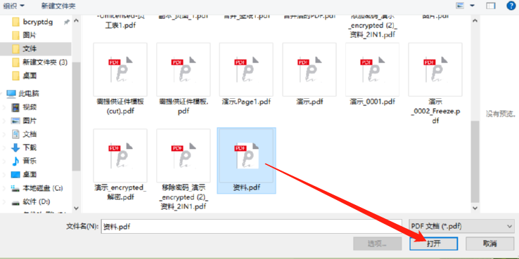 2.点击之后下一步会出现一个选择文件的界面,在这个界面中我们选中目标PDF文件之后点击右下角的打开按钮即可。