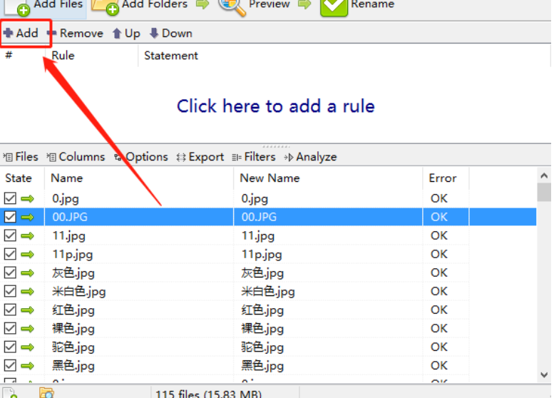 3.将文件添加到软件之后,我们点击界面中的Add这个按钮,点击之后即可添加重命名文件的规则。