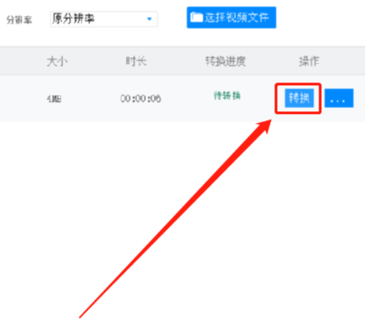 5.选择好想要转换视频的分辨率之后,我们点击操作模块下面的转换按钮即可开始转换这个视频文件。