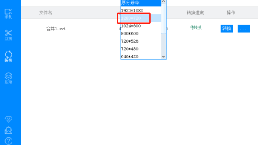 4.选择好想要使用的转换格式之后下一步我们还可以设置视频的分辨率,点击打开下拉列表之后选择自己想要的视频分辨率即可。