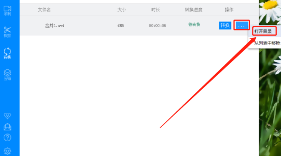 6.最后等到转换完成,我们点击转换按钮后面的三点按钮在出现的界面选项中点击打开目录选项就可以查看转换之后的视频文件了。