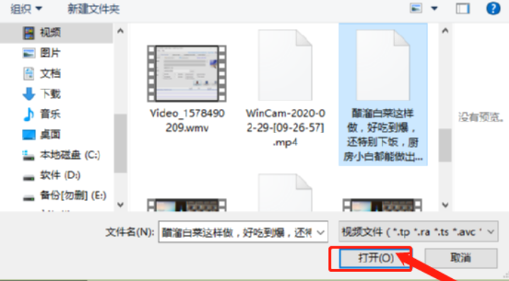 3.点击添加视频之后紧接着会打开一个选择文件的界面,在这个界面中选中要添加字幕的视频之后点击打开按钮即可。