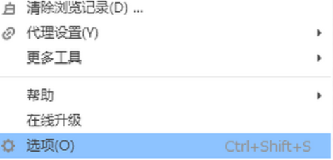 3.打开浏览器菜单界面之后我们在出现的选项中点击“选项”,进入到浏览器的选项设置界面。