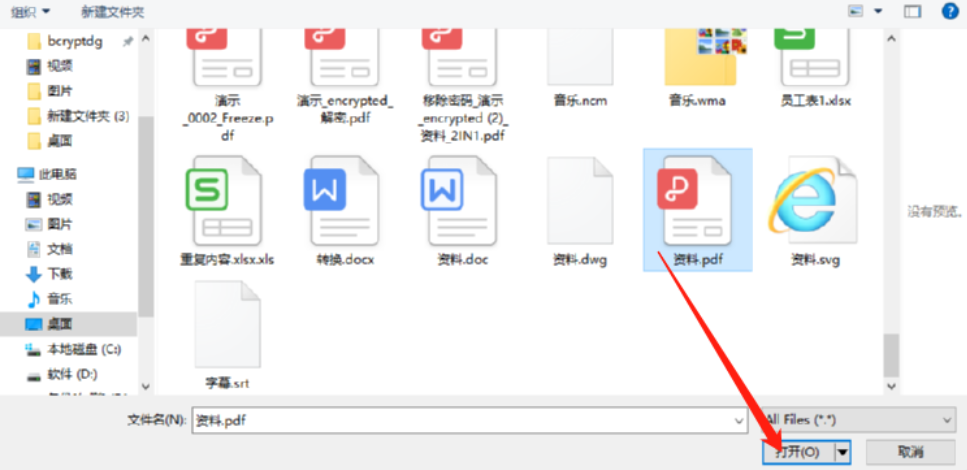 3.点击之后就会打开一个选择文件的界面了,在这个界面中我们选中目标PDF文件之后点击打开按钮即可。