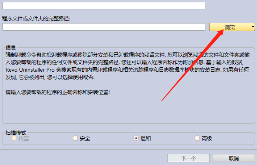 2.点击强制卸载按钮之后会出现下图所示的界面,然后我们需要点击界面中的浏览按钮来选择想要卸载的程序。