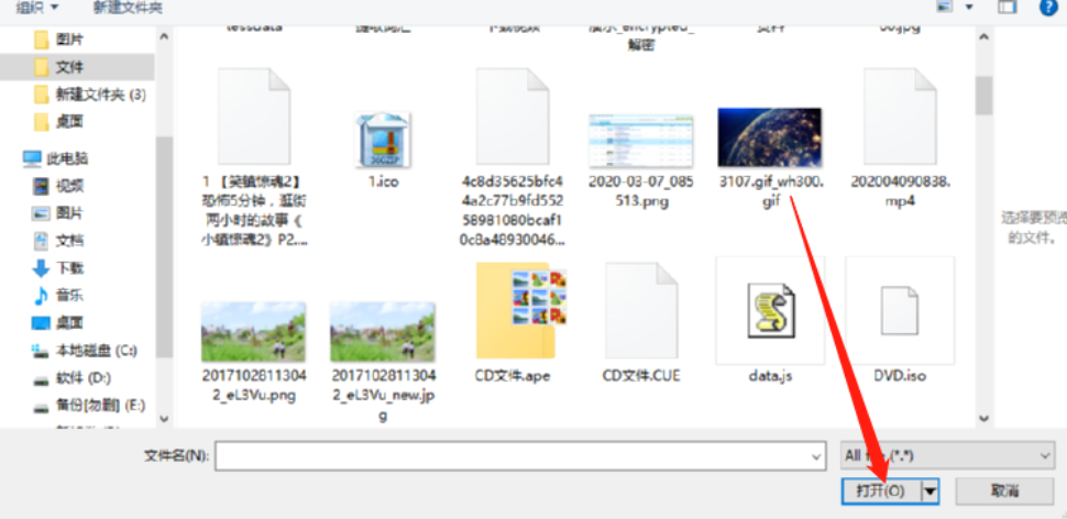 2.点击添加文件按钮之后下一步在打开的选择文件界面中,我们选中想要压缩的GIF图片之后点击打开按钮。