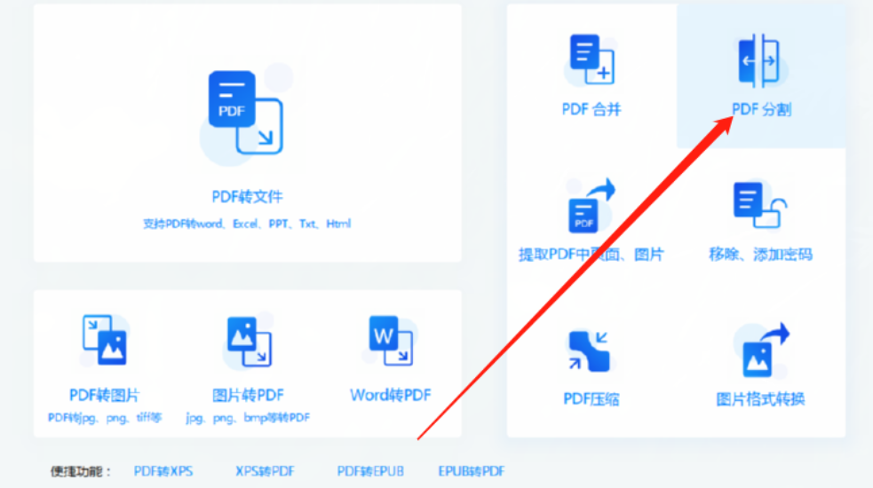 1.首先第一步我们打开软件之后在软件界面中找到PDF分割这个功能点击进入到其中。