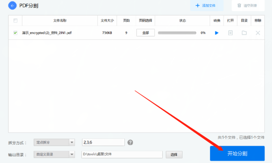 6.最后我们设置好分割文件的方式之后,点击界面右下角的开始分割按钮就可以开始分割PDF文件了。