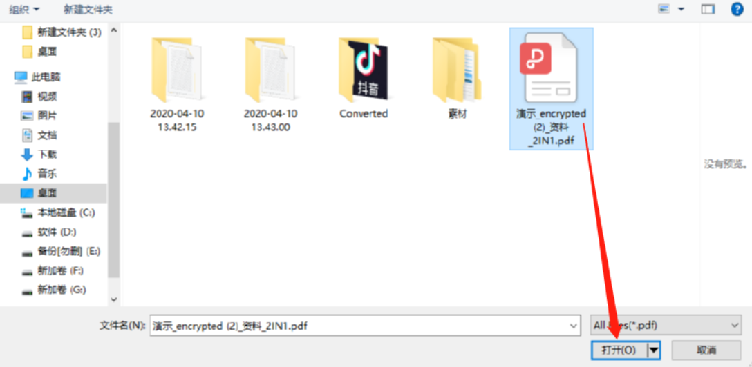 3.点击添加文件之后紧接着就打开一个选择文件的界面了,我们在这个界面中选中PDF文件之后点击打开按钮即可。
