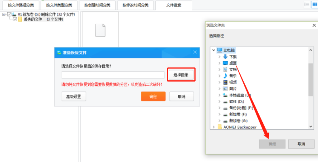 7.最后我们选择好想要保存恢复文件的文件夹目录之后,点击界面中的确定按钮就可以开始恢复了。