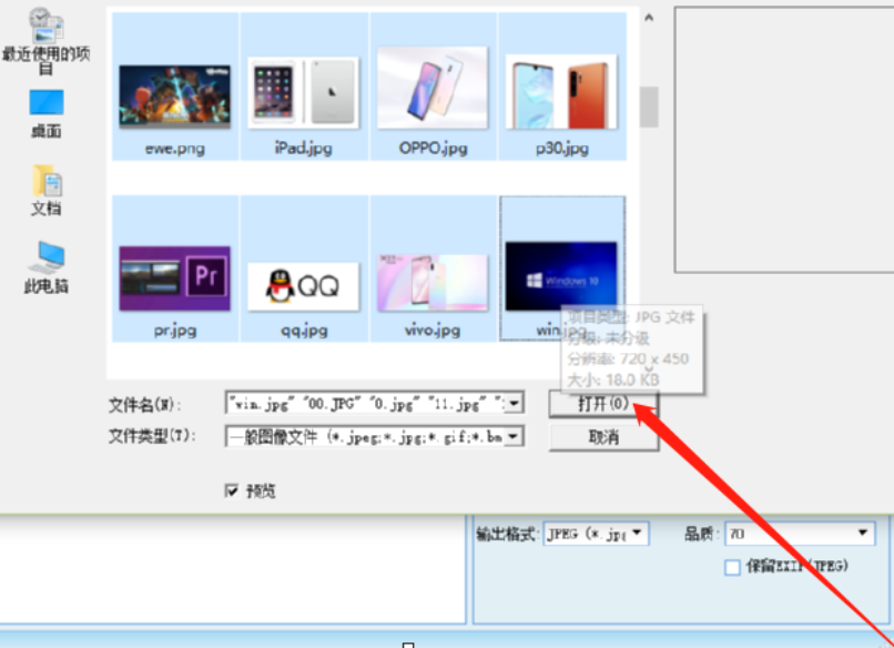 2.点击添加图片源文件按钮之后会打开一个选择文件的界面,在这个界面中我们选中想要处理的图像之后点击打开按钮。