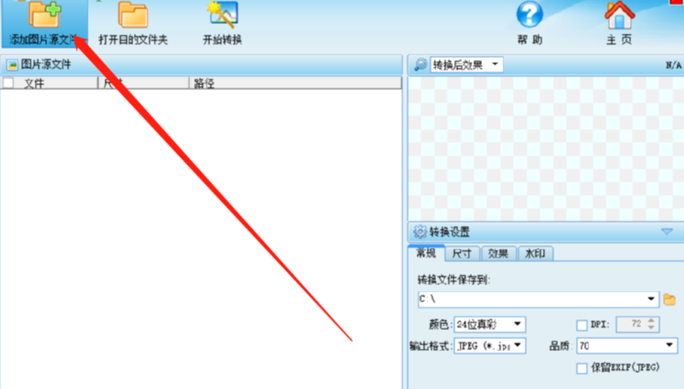 1.首先第一步我们打开软件之后在软件界面左上角点击添加图片源文件这个功能图标,准备添加需要处理的图片。