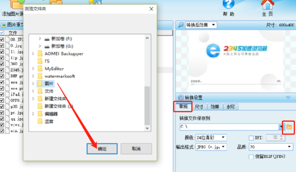 5.设置好想要调整的尺寸之后我们切换到常规这个界面中,然后点击文件夹图标可以选择处理之后的图片输出保存位置。