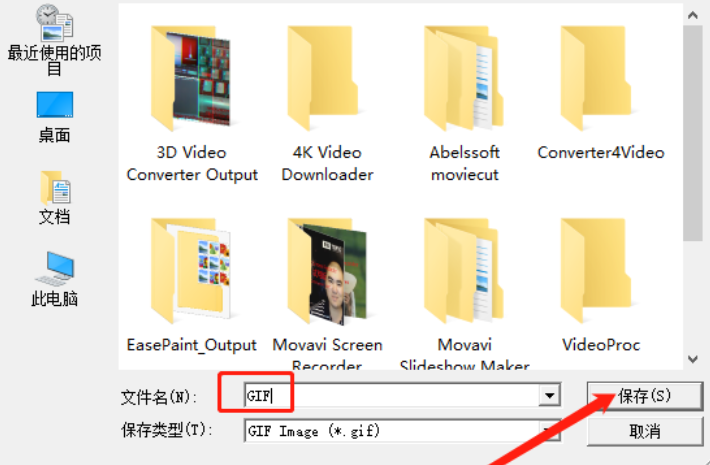 6.点击保存为GIF之后会出现一个文件另存为的界面,我们在其中选择好保存GIF的位置,然后设置好名称我们就可以点击保存按钮进行保存了。