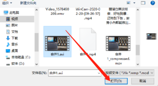 3.点击添加图标之后会打开一个选择文件的界面,在这个界面中我们选中目标视频文件之后点击右下角的打开按钮。