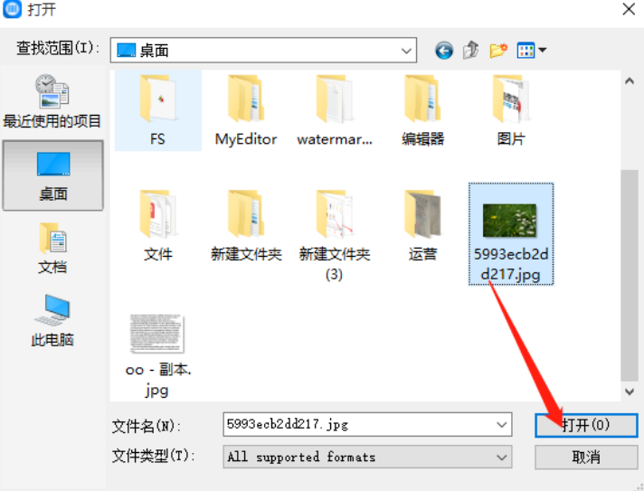 2.点击打开按钮之后下一步在出现的界面中找到自己想要分割的图片并选中,选中之后点击界面中的打开按钮即可。
