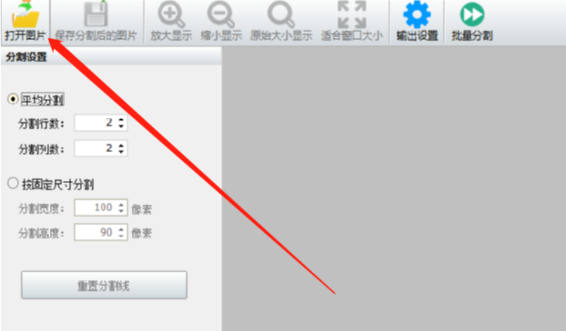 1.首先第一步我们打开软件之后在界面左上角点击打开图片这个功能按钮,点击之后即可选择想要分割的图片。