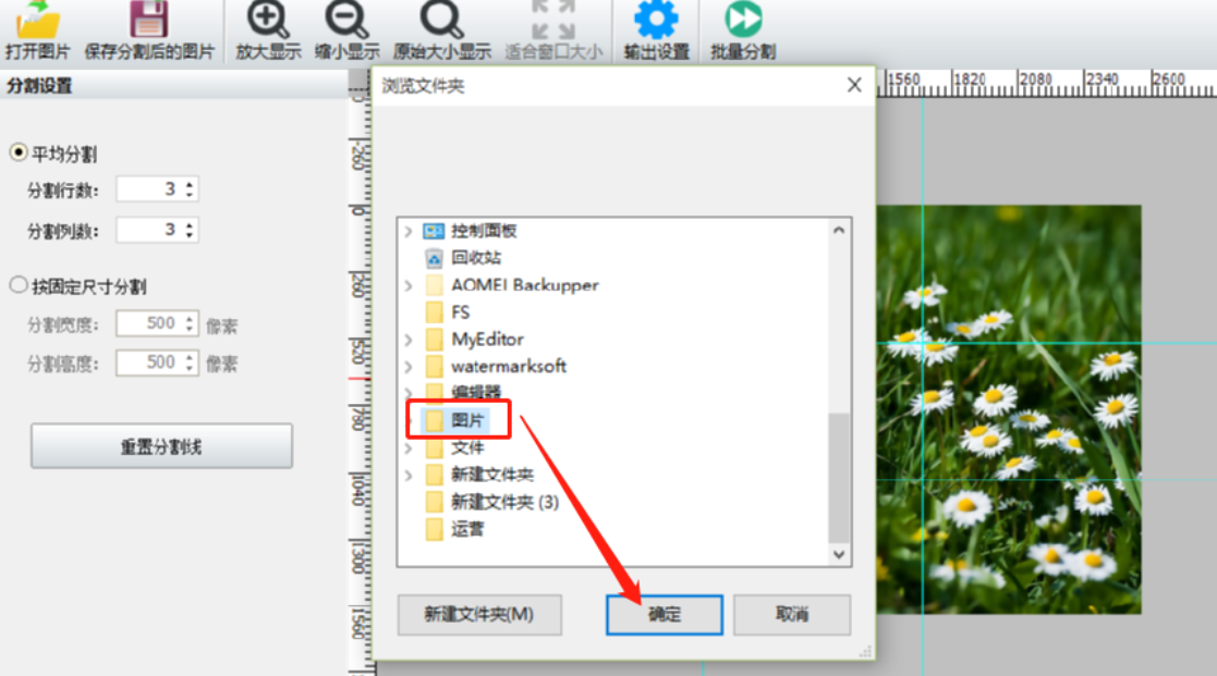 6.点击保存之后最后一步就是选择分割图片的保存位置,选择完成之后我们点击确定按钮即可将分割图片给保存下来。