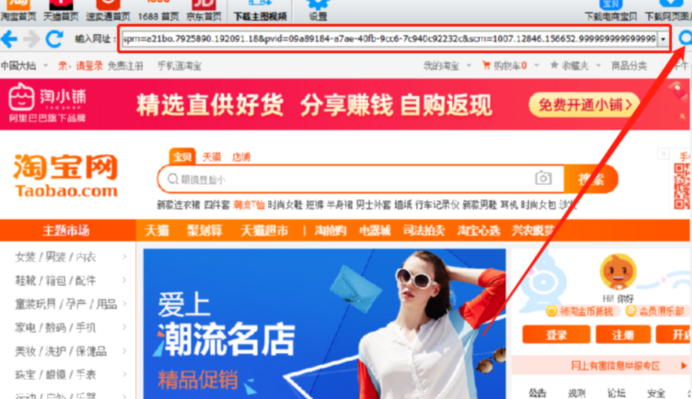 1.首先第一步我们打开软件之后将想要下载主图视频的淘宝商品链接复制到地址栏中,然后点击右边的搜索图标。