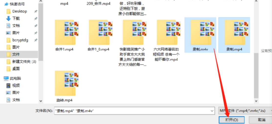 2.点击添加视频之后会打开一个选择视频的界面,在这个界面中我们选中想要合并的视频之后点击下方的打开按钮即可。