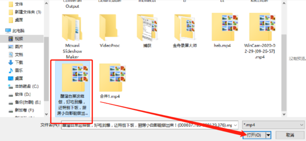 2.点击打开视频文件之后我们在出现的选择文件界面中选中想要剪切的视频之后点击右下角的打开按钮。