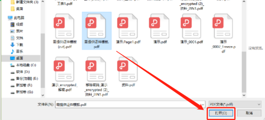 2.点击添加文件按钮之后会打开一个选择文件的界面,在这个界面中我们选中想要提取图片的PDF文件,选中之后点击打开按钮。