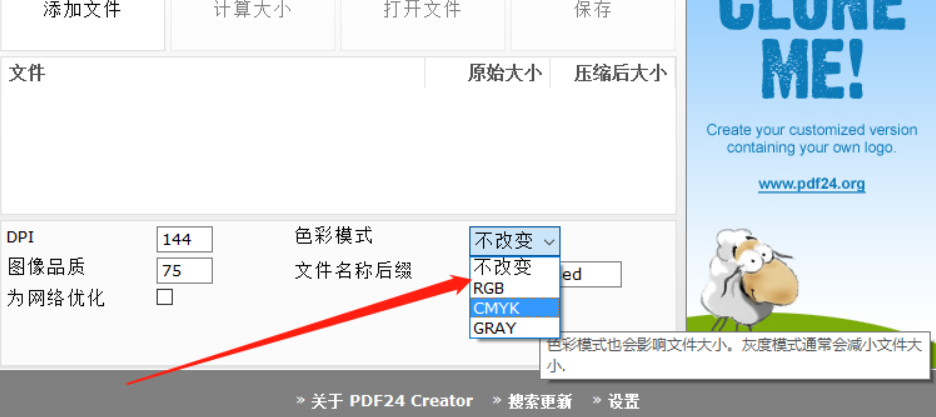 3.另外还有色彩模式这个选项可以进行设置,打开下拉列表之后可以根据自己的需求来选择色彩模式。
