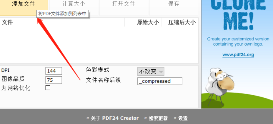 4.设置好这些压缩参数之后我们就可以点击界面左上角的添加文件按钮了,点击之后添加想要压缩的PDF文件。
