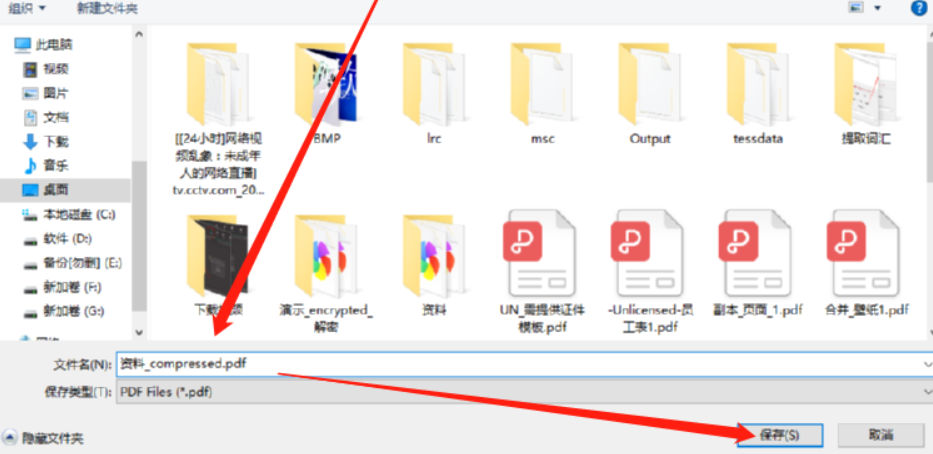 7.最后我们点击界面中的保存这个功能按钮就可以将压缩之后的PDF文件保存下来了,点击保存之后在出现的文件另存为界面中输入文件的名称,点击保存按钮即可保存成功。