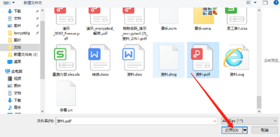 5.点击添加之后就会打开一个选择文件的界面,在这个界面中我们选中目标PDF文件之后点击右下角的打开按钮即可。