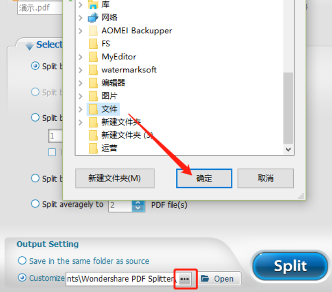 4.设置好分割文件的方式之后我们点击下方输出文件夹的三点按钮,点击之后就可以选择想要输出保存文件的文件夹了。