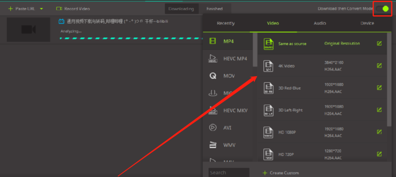 5.等到视频文件检测完成之后在界面中会显示视频的标题,我们点击右上角的按钮还可以同时转换下载视频文件的格式,最后等到软件帮我们下载完成即可。