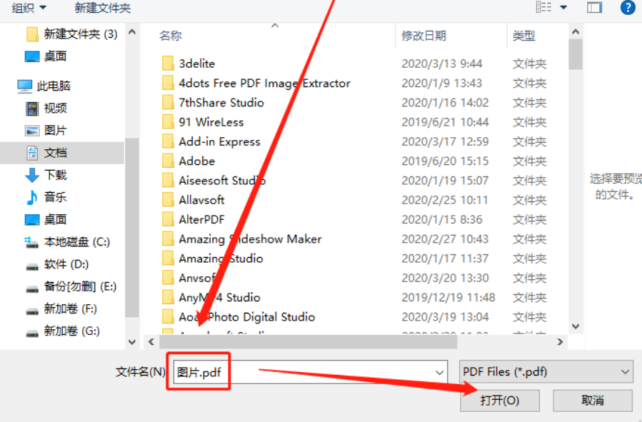 2.点击浏览按钮之后会出现一个选择文件的界面,在这个界面中我们选中想要打印的PDF文件之后点击右下角的打开按钮。