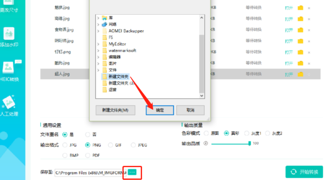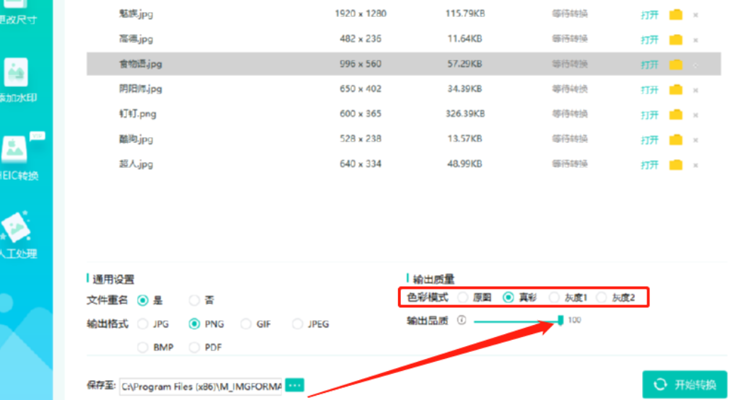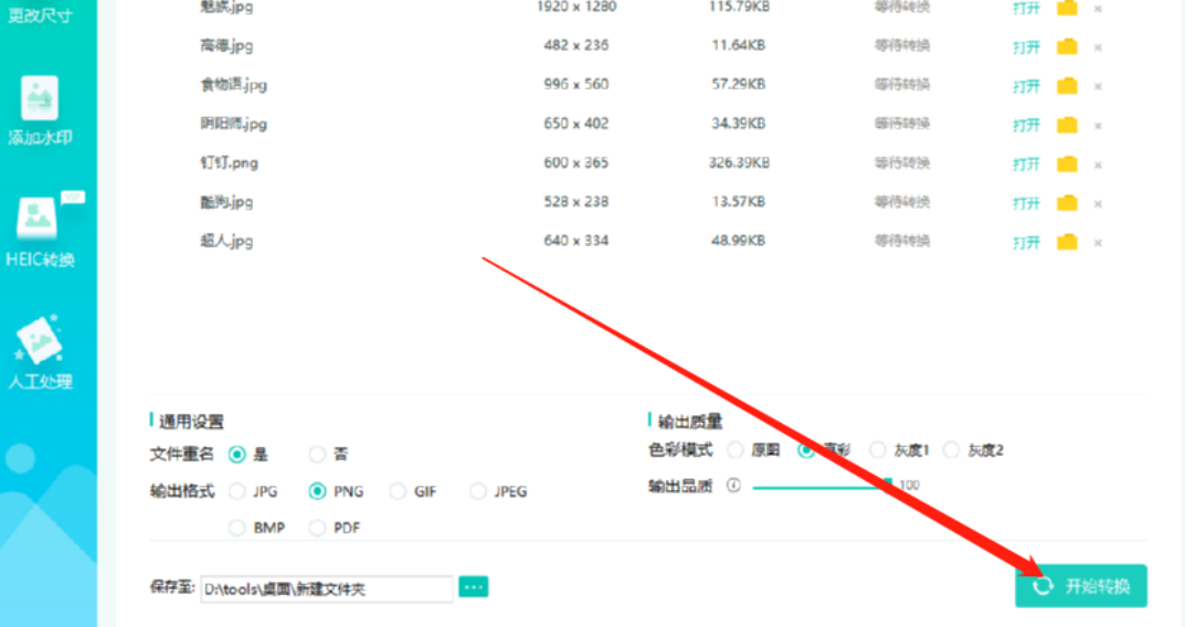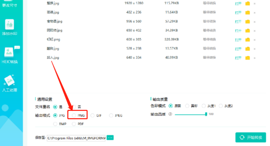 6.最后一步我们在设置好上述步骤中的参数之后,只需要点击界面右下角的开始转换这个功能按钮就可以开始批量转换这些图片为PNG格式了。