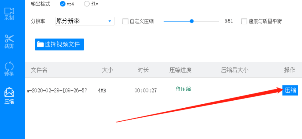 5.最后我们在设置好这些压缩参数之后我们就可以点击操作这个选项下面的压缩按钮了,点击即可开始压缩视频文件。