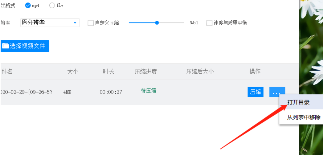 6.等到压缩操作完成之后我们点击后面的三点按钮就会出现打开目录的选项,点击打开目录之后即可查看压缩文件储存的目录。