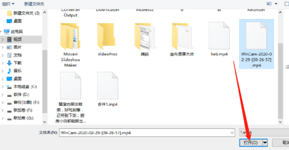 2.点击选择视频文件按钮之后就会出现一个选择文件的界面,在这个界面中我们选中想要压缩的视频然后点击打开按钮。