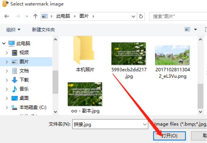 4.点击打开按钮之后我们就可以点击界面中选择水印文件的三点按钮了,点击之后在出现的界面中选择想要添加到PDF文件中的水印文件。