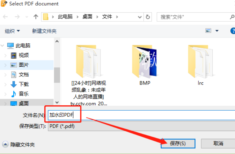 6.最后点击给PDF添加水印按钮之后会出现一个保存添加水印之后的PDF文件的界面,我们设置好文件名称之后点击保存按钮即可。