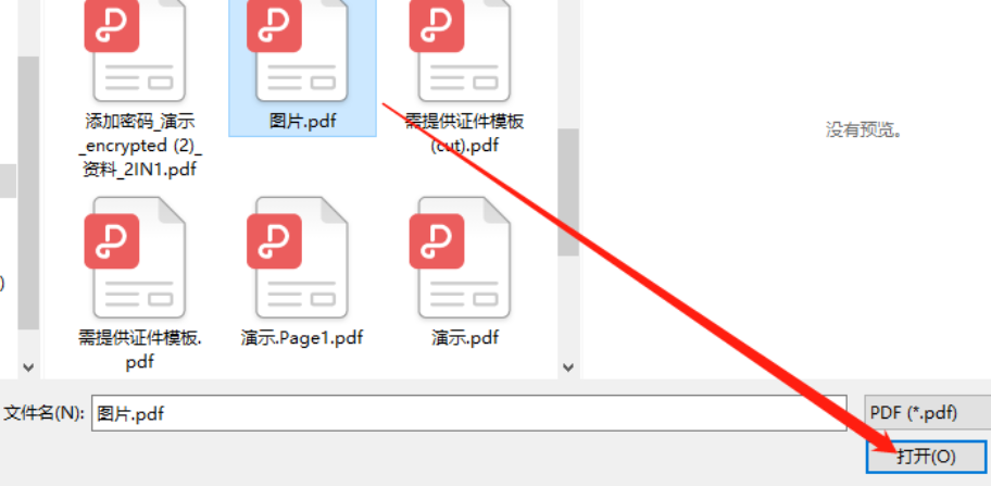 3.点击选择PDF文件之后在出现的选择文件界面中,我们选中目标文件之后点击右下角的打开按钮即可。