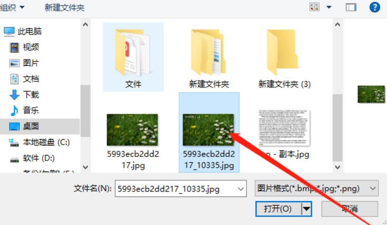 3.点击添加水印按钮之后接下来会出现一个选择文件的界面,我们在这个界面中选中目标图片文件之后点击打开按钮。