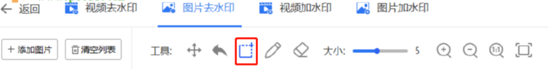 4.选择好想要去除水印的图片之后我们在软件界面中使用矩形工具,然后选取图片中有水印的区域,如下图中所示。