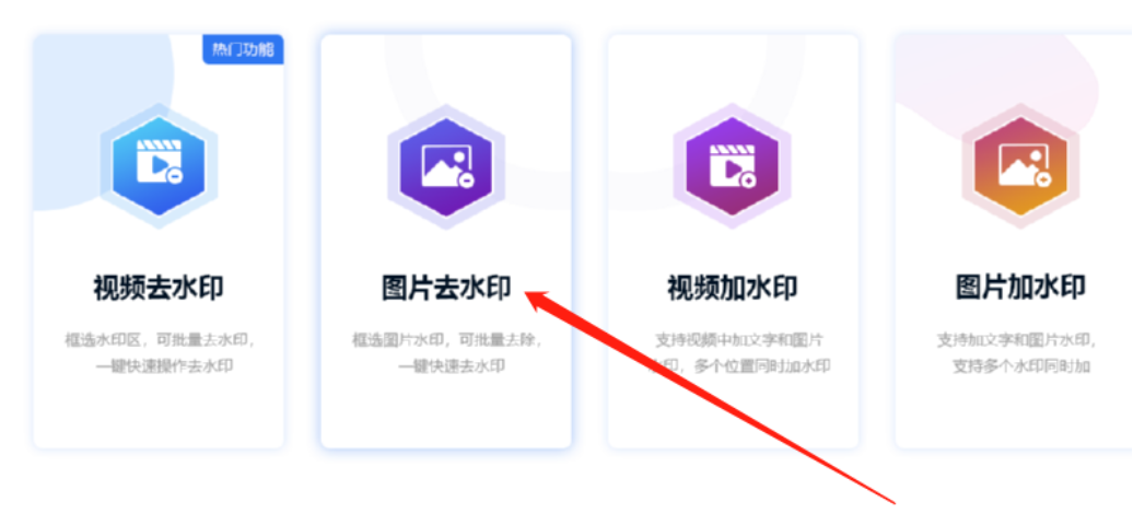1.首先第一步我们打开软件之后在软件界面中找到图片去水印这个功能选项,然后点击进入到其中。