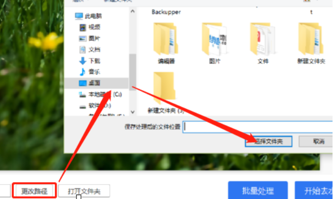 5.选好图片中水印所在的区域之后我们点击更改路径按钮可以更改图片去除水印之后的储存位置。