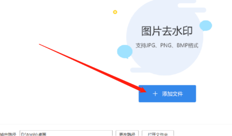 2.点击进入到图片去水印功能之后,下一步就是点击界面中的添加文件这个功能按钮,点击之后添加想要去除水印的图片。