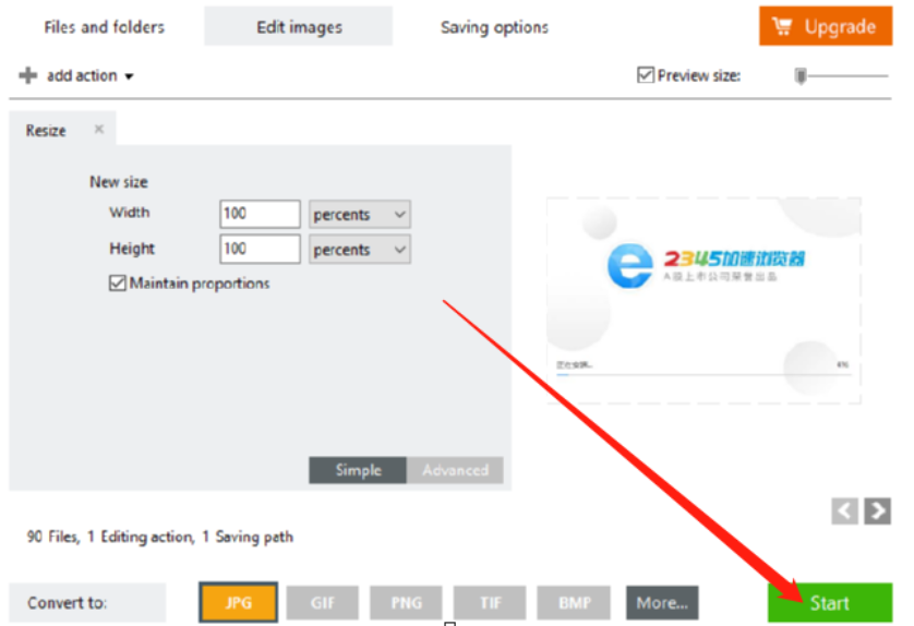 6.最后我们在预览效果满意之后只需要点击界面右下角的Start按钮就可以开始批量修改这些图片的尺寸大小了。